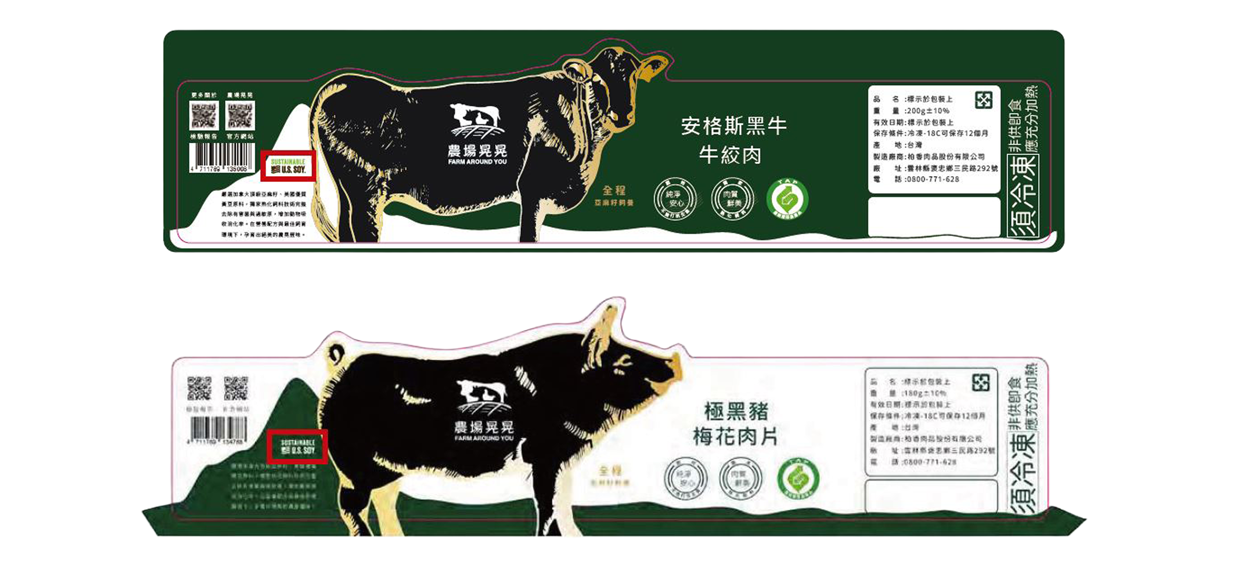 또한 최근에는 축산물과 수산물의 포장재에 부착되는 Fed with SUSS logo가 추가됐습니다. Fed with SUSS logo는 지속가능한 미국대두를 60% 이상 사용한 사료를 급여하여 생산된 축산물과 수산물에만 사용할 수 있습니다.