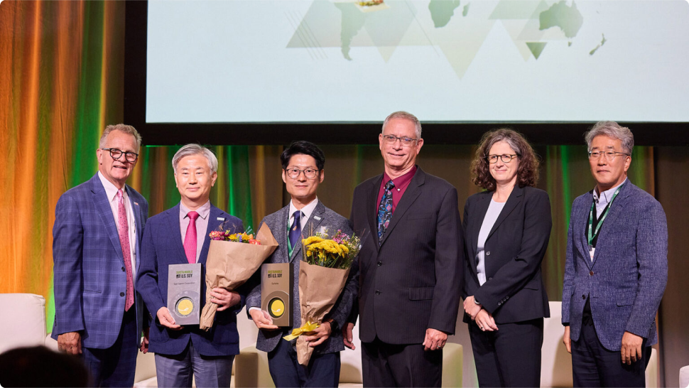 미국대두 지속가능 인증로고를 부착하며 선도적 환경기업의 대열에 들어선 사조대림과 아워홈은 2024년 8월 미국 샌프란시스코에서 열린 ‘소이 컨넥스트(Soy Connext)’에서 미국대두 지속가능성 인증 로고를 부착한 세계 26개 기업과 함께 모여 어워드 세러머니를 진행했습니다. 사조대림과 아워홈은 이날의 세러머니를 통해 세계의 지속가능한 발걸음에 동참하는 계기를 마련했습니다.