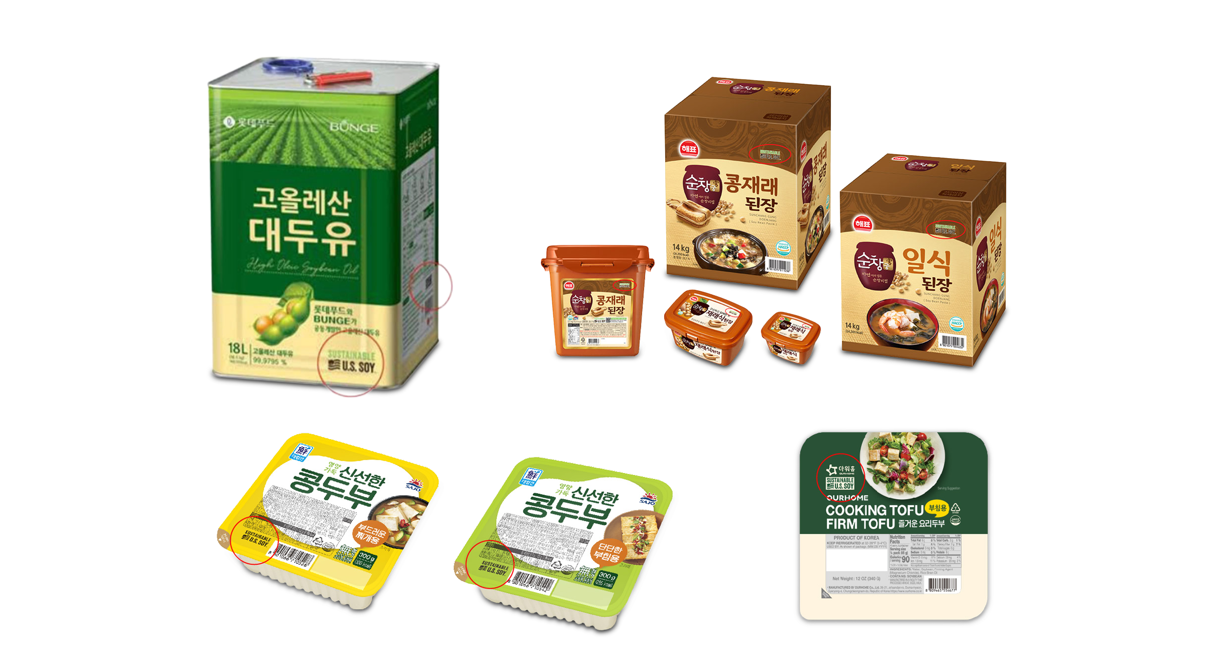 또한 최근에는 축산물과 수산물의 포장재에 부착되는 Fed with SUSS logo가 추가됐습니다. Fed with SUSS logo는 지속가능한 미국대두를 60% 이상 사용한 사료를 급여하여 생산된 축산물과 수산물에만 사용할 수 있습니다.