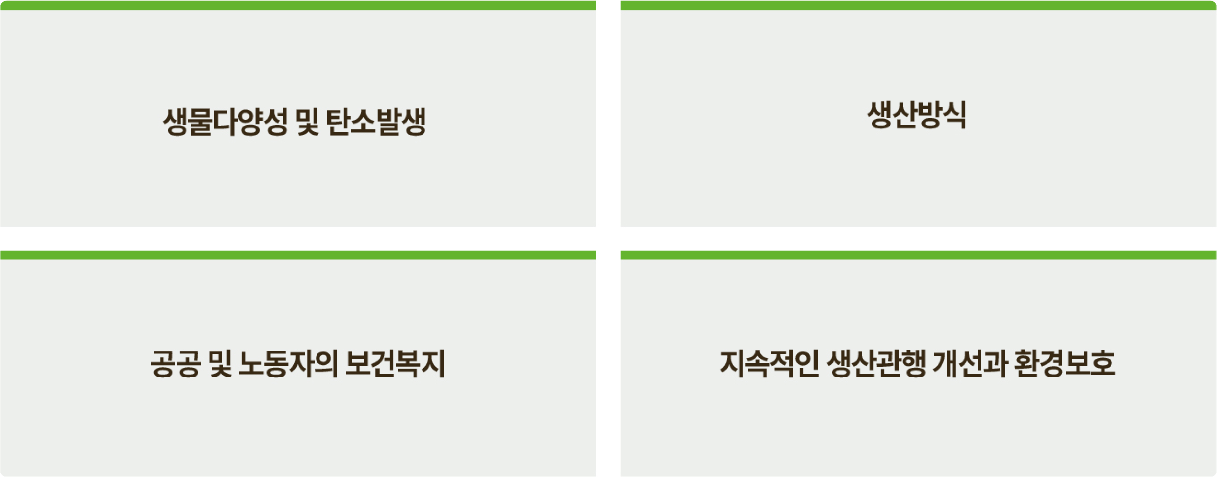 탄소발자국은 상품을 생산하고 소비하는 과정에서 발생하는 온실가스, 특히 이산화탄소의 총량을 의미합니다. 농산물을 경작할 때에도 탄소발자국이 발생하기 때문에, 지속가능성을 위해서는 생산과정에서의 탄소발자국을 줄이기 위한 노력과 이런 방식으로 생산된 제품을 소비하고자 하는 노력이 함께 이뤄져야 합니다. 소비자들은 구매하는 제품이 지속 가능한 방식을 사용하기를 점점 기대하고 있으며, 이러한 요구를 생산자들에게 전달하고 있습니다.